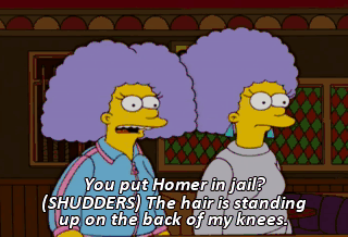 You put Homer in jail? (SHUDDERS) The hair is standing up on the back of my knees. Keep your Odor-Eaters on, Selma. I've seen you get hurt too many times.