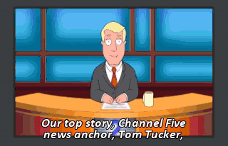 Our top story, Channel Five news anchor, Tom Tucker, has a meltdown at a local comedy club. Look at you, you fat, gross Moroccans with your ooga-booga food.