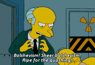 Bolshevism! Sheer bolshevism! Ripe for the quashing! (GRUNTING) You're suspended without pay. Take your clacking balls and go.
