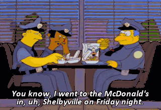 You know, I went to the McDonald's in, uh, Shelbyville on Friday night.