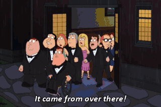 It came from over there! (ALL GASPING) Dear God! He's dead. Do you think he slipped off the roof?