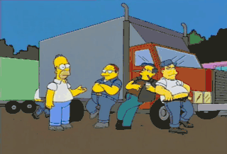 You guys work on the movie? You're sayin' we're not working? Oh, I always wanted to be a Teamster. So lazy and surly.