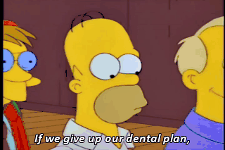 If we give up our dental plan, I'll have to pay for Lisa's braces! People, stop! We can't give up our dental plan!