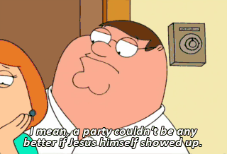I mean, a party couldn't be any better if Jesus himself showed up. Ok, everybody. For my next miracle, I'm gonna turn water into funk.