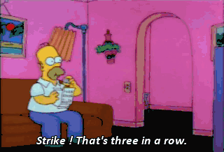 Strike ! That's three in a row. Let's see that one again. The throw. There it is. Here it comes. Note the excellent wrist-- just about to go in the gutter, and then a nice spin.