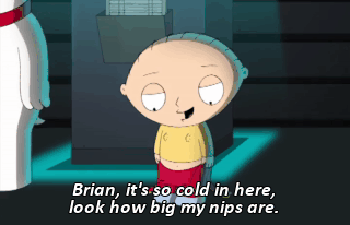 Brian, it's so cold in here, look how big my nips are.
