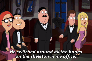 He switched around all the bones on the skeleton in my office. I don't know what's what anymore. Let's take a look at that wrist injury.