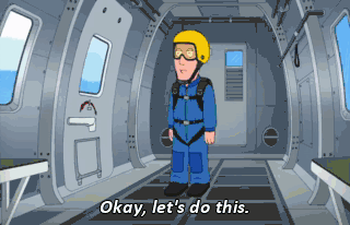 Okay, let's do this. JOE: Hey. Whoa, is that Harrison Ford? Yeah. It said in the brochure that he assists with all the jumps. Get off my plane. Get off my plane. Get off my plane.