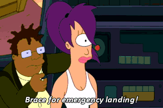 Brace for emergency landing! What? We survived the crash? Oh, Fry! Party people in the house say... (GASPING) This is wonderful.