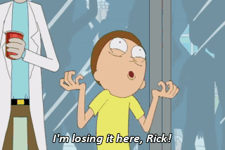 I'm losing it here, Rick! Relax, Marty, relax! It's gonna be fine. All we have to do is go out and find us some Kalaxian crystals. Oh, shit, motherfucker!