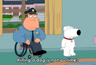 Killing a dog is not a crime? (LAUGHING) Of course not. Yeah, especially for you. An animal killing another animal. That happens all the time. Hey, sweet ass. Last night was fantastic. Hello? Where'd you go?