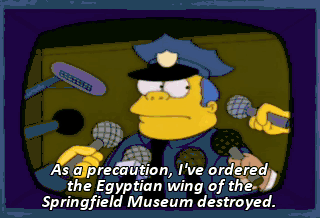 As a precaution, I've ordered the Egyptian wing of the Springfield Museum destroyed. Nice work, Ed.