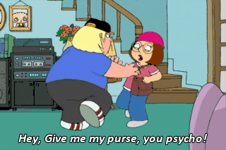 Hey, Give me my purse, you psycho! Let's see. Makeup, chewing gum,