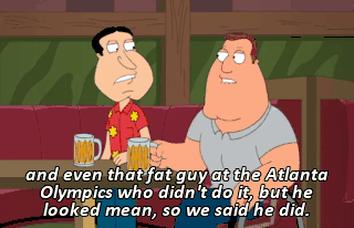 and even that fat guy at the Atlanta Olympics who didn't do it, but he looked mean, so we said he did.