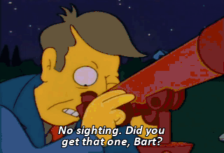No sighting. Did you get that one, Bart? - Hell, no. - Good. My stars! Give me the phone! Quick!