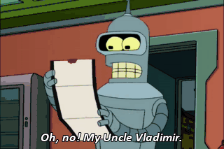 Oh, no! My Uncle Vladimir. Oh, I'm sorry, Bender. When's the funeral? Tomorrow at the family castle. Followed by the reading of his will. Well, I'm rich.
