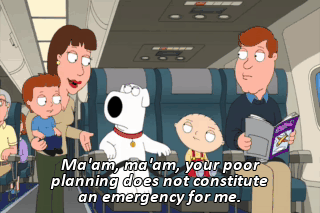 Ma'am, ma'am, your poor planning does not constitute an emergency for me.