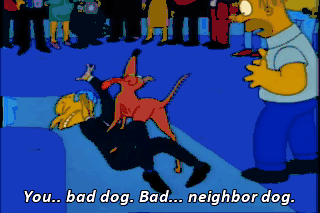 You.. bad dog. Bad... neighbor dog. Here. Let me help you up, Mr. Burns.