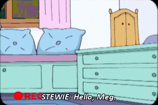 STEWIE: Hello, Meg. (STEWIE GASPS) (STEWIE COUGHING)