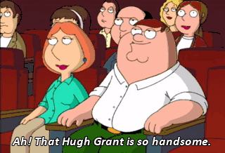 Ah! That Hugh Grant is so handsome. Oh, is that how it is? Come here, you home-wrecking bastard! Ugh! Don't do it, Dad! He's bigger than you!