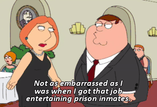 Not as embarrassed as I was when I got that job entertaining prison inmates.