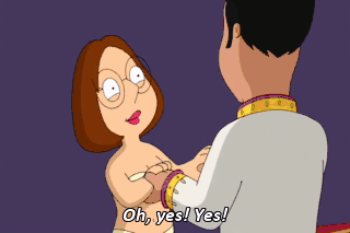Oh, yes! Yes! (ROMANTIC MUSIC PLAYING) (GUNSHOT) No! Stewie? (INNOCENTLY) Hi, Meg. (ZAPPING)