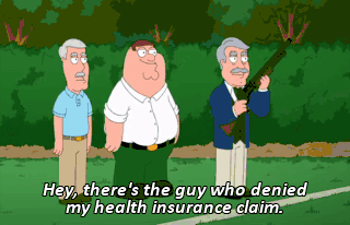 Hey, there's the guy who denied my health insurance claim. Sir, your nipples are fine! You don't need to reconstruct them! I want Hershey Kiss nipples, and I want you to pay for them!