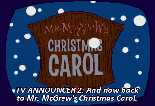 TV ANNOUNCER 2: And now back to Mr. McGrew's Christmas Carol.