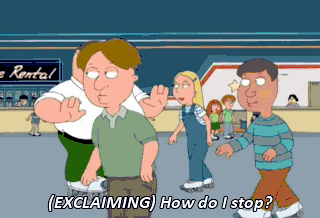 (EXCLAIMING) How do I stop? Use the rubber stoppers on the front. Hey, baby, how'd you like to share a pair of skates? Sure! Never mind! Boy, you look a lot better from the back. You jerk!