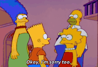 Okay, I'm sorry too. No, no, no ! That won't do at all ! Yeah, boy. Get down on your knees and beg for forgiveness ! Yeah, beg me, Bart. Beg me ! Lisa, I beg of you. Please forgive me !