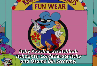 Itchy Poochie, Scratchbob Itchpants, Confederate Itchy and Osama Bin Scratchy.