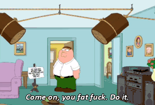 Come on, you fat fuck. Do it. (SCREAMING) (LAUGHING) Who's laughing now? I got my hat.