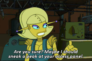 Are you sure? Maybe I should sneak a peak at your access panel. Hey, according to the Scab Handbook, that's extremely inappropriate banter. And that's just the way I like it. Haile H. Selassie!
