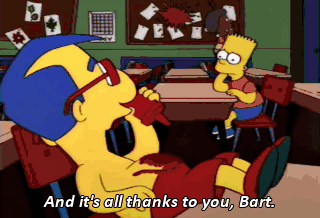 And it's all thanks to you, Bart. - Yeah, great. - What's the matter? Don't you see, Milhouse? We've gone too far. We need Skinner back. My water dish is empty!