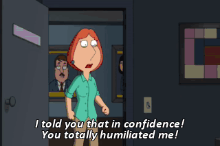 I told you that in confidence! You totally humiliated me!