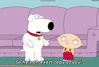 So he's an exact copy of you? Well, not exact. I have to remain superior, so I bred out some of the intelligence, made him sort of a simpleton, you know? I call him Bitch Stewie. Would you like to meet him?