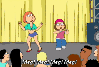 Meg! Meg! Meg! Meg! Atta girl! Shake your money-maker! Meg! Meg! Meg! Meg! Oh, my God! It's a chick!