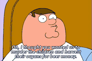 Oh, I thought you wanted us to murder the children and harvest their organs for beer money.