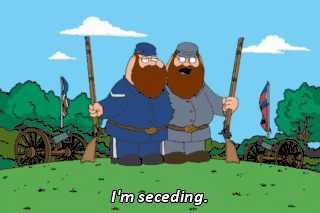 - I'm seceding. - Like hell you are. Not too smart, huh? Yeah, did not think that one through.