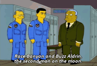 Race Banyon and Buzz Aldrin, the second man on the moon. Second comes right after first.