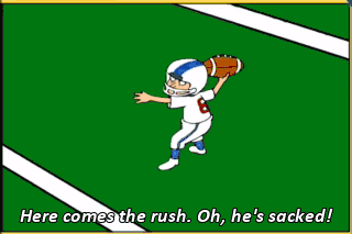 Here comes the rush. Oh, he's sacked! Looks like little Johnny should've wished for some blocking.
