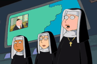 Sister Mary Joseph, it appears Peter Griffin has entered a synagogue! Lock and load, Brides of Christ! Excellent, excellent!