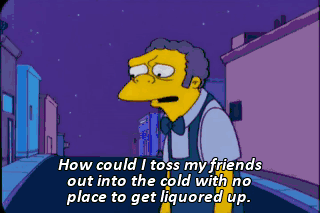 How could I toss my friends out into the cold with no place to get liquored up.
