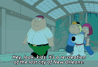 Hey, look, kids, it's a re-creation of the lost city of New Orleans. Dad, was there ever a real city of New Orleans? No one knows, Chris. No one knows.