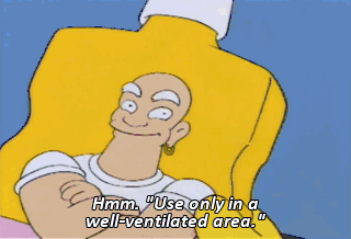 Hmm. "Use only in a well-ventilated area." Shove it, buddy.