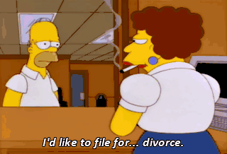 I'd like to file for... divorce. These things happen. Eight dollars.