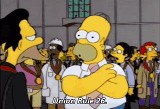 Union Rule 26. "Every employee must win Worker of the Week at least once, regardless of gross incompetence, obesity or rank odor." Attention everyone. Let's have an awed hush, please, for Mr. Burns.