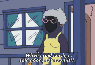When I said lunch, I said noon, not noon-isH.