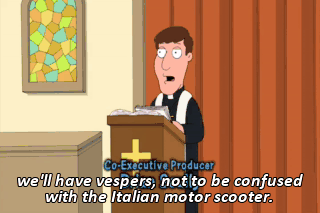 we'll have vespers, not to be confused with the Italian motor scooter.