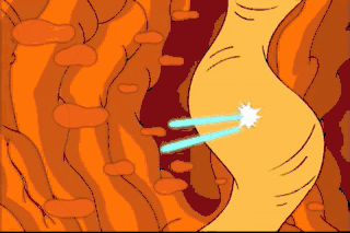 Oh, Jeez, my duodenum's actin' uP! Entering testicular perimeter.